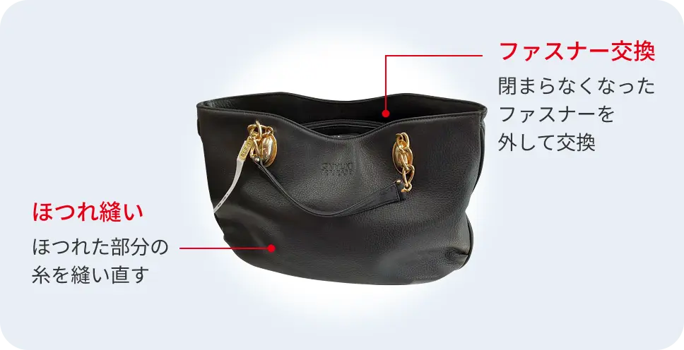 持ち手の傷みや金具の不具合など、状態を確認したうえで、最適な修理をご提案します。