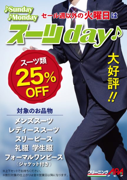 セール週以外の火曜日はスーツデー
