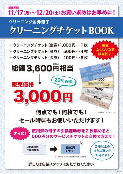 クリーニングチケットBOOK販売