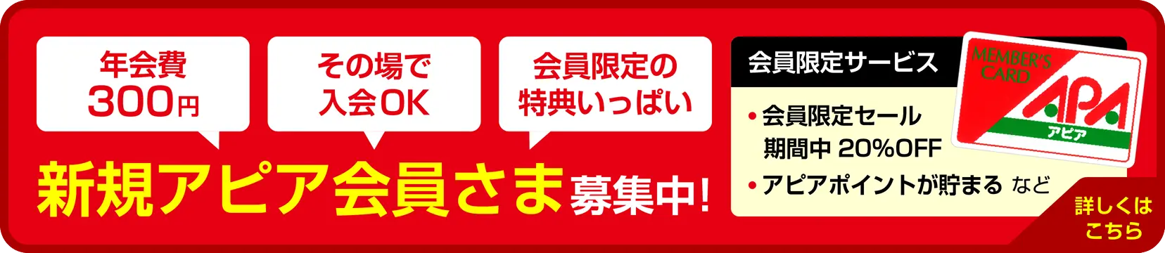 | 品名 | 一般価格 | アピア会員 セール期間中は20%OFF |