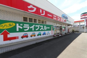 この店舗の大きな特徴は『ドライブスルー』である事。そして敷地内に工場が2つあり、ドライ専門工場と水洗い専門工場とにわかれ、上田佐久地域のクリーニングをまとめて行う、ユニット店としてはめずらしい大型の集中工場です。